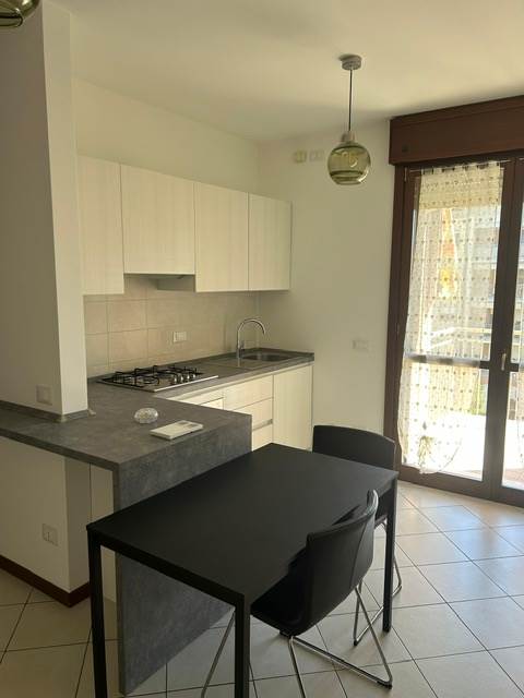 R4)Appartamento di recente costruzione completamento arredato disponibile da subito si affitta per un anno con contratto transitorio . Ingresso su soggiorno con angolo cottura, camera matrimoniale, bagno e due balconi.